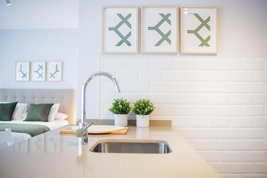 Consta de 1 habitación con cama de matrimonio, salón-cocina con sofá cama, 1 baño, amplia terraza exterior y zona verde de uso común.