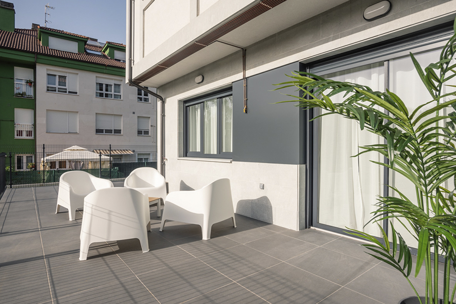Consta de 1 habitación con cama de matrimonio, salón-cocina con sofá cama, 1 baño, amplia terraza exterior y zona verde de uso común.